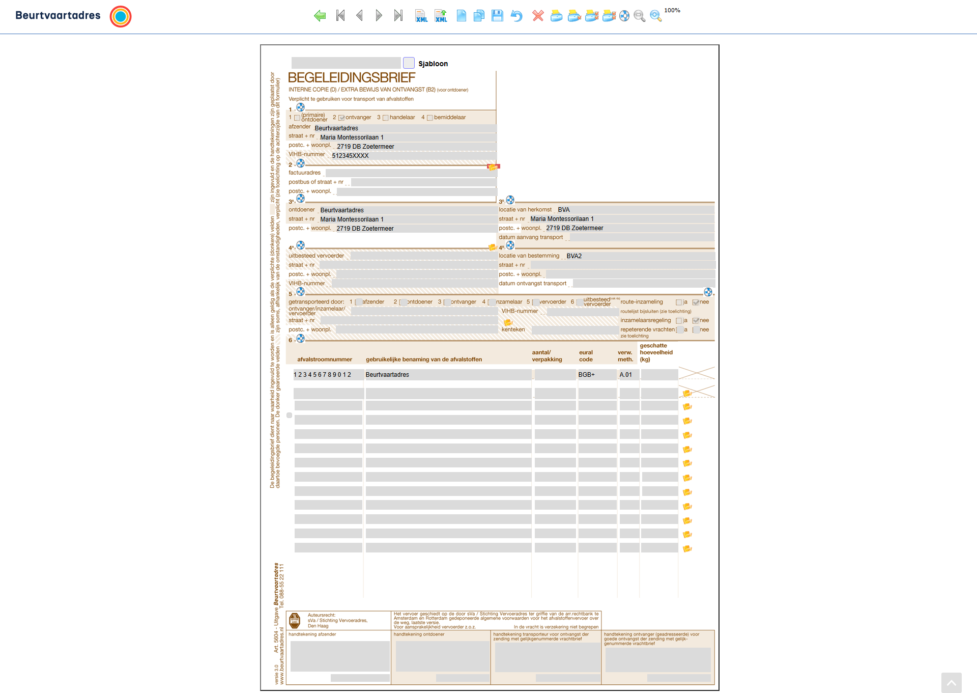 Automatische invulling van begeleidingsbrieven op basis van het geselecteerde afvalstroomnummer.